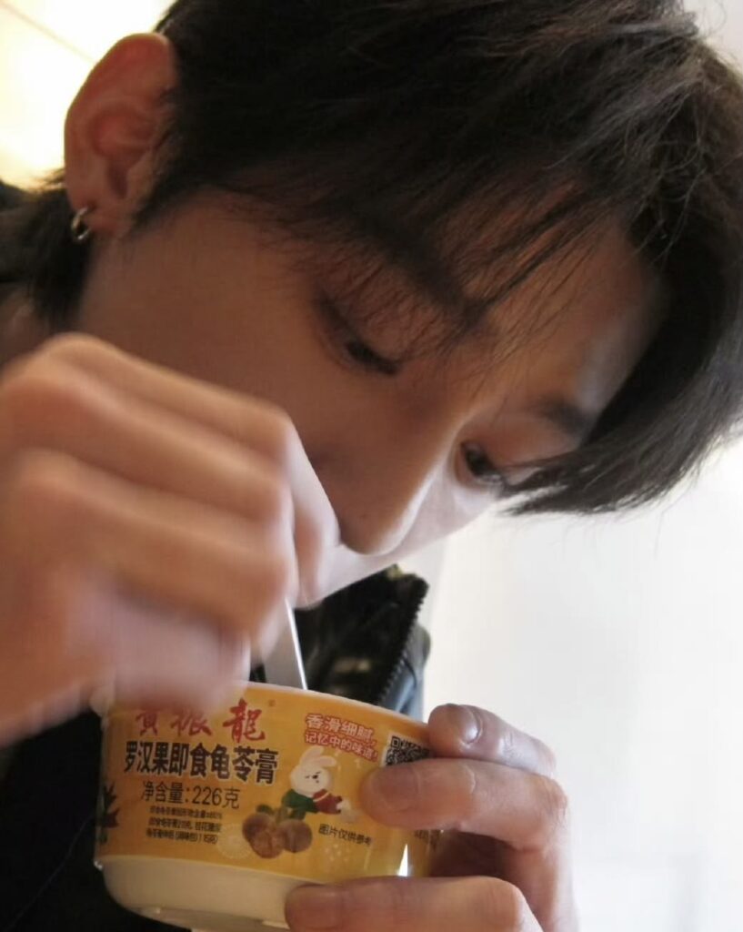 Mì ăn liền, nước ngọt, tay cầm chơi game, một chiếc giường đơn.